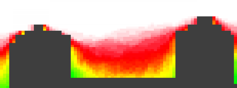 Como anticipo os traemos una de las pruebas que corresponde a un diagrama de radiación para una sección vertical por el centro de una de las manzanas del ensanche de Barcelona.